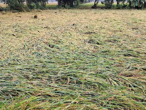 கரூரில் நெற்கதிர்கள் சாய்ந்தன.