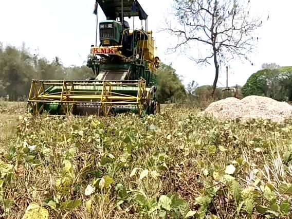ஜனவரி மாத இறுதியில் விதைப்பு செய்யப்பட்ட உளுந்து, பயிறு தற்போது அறுவடைக்கு தயாராக உள்ளது. இந்நிலையில் பெண் தொழிலாளர்களை வைத்து உளுந்து, பயிறு செடிகள் அறுவடை செய்யப்பட்டு மகசூல் எடுப்பது வழக்கம். ஆனால், தற்போது கூலி ஆட்கள் பற்றாக்குறையாலும், சம்பள உயர்வால் பல இடங்களில் நெல் அறுவடை போன்றே உளுந்து, பயிறும் இயந்திரம் மூலம் அறுவடை செய்யும் பணிகளை விவசாயிகள் மேற்கொண்டள்ளனர்.