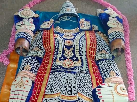 தென் திருப்பதி என்று அழைக்கப்படும் அருள்மிகு ஸ்ரீ கல்யாண வெங்கட்ரமண சுவாமி ஆலயம் பண்டைய காலத்தில் பாறையில் செதுக்கும்போது தானே உருவான பெருமாள் தொன்மையான பெயருமுண்டு. அப்பொழுது இருந்து கரூர் மாவட்டத்தில் உள்ள கல்யாண வெங்கட்ரமண சுவாமி ஆலயத்திற்கு பக்தர்கள் வருகை நாளுக்கு நாள் அதிகரித்துக் கொண்டே வருகிறது. இந்நிலையில் பல்வேறு பக்தர்கள் தங்களால் முடிந்த காணிக்கை நேர்த்திக் கடன் உள்ளிட்ட பல்வேறு பிரார்த்தனைகளை செய்து வருகின்றனர். இன்னிலையில் சென்னையை சேர்ந்த கண்ணன் என்பவர் தனது 4 சகோதரர் மற்றும் ஒரு சகோதரி உடன் குடும்பம் பிரார்த்தனைக்காக கல்யாண வெங்கட்ரமண சுவாமி ஆலய உற்சவர் சிலைக்கு கடந்த இரண்டு மூன்று ஆண்டுகளுக்கு முன்பாக முத்தங்கி ஆடை வழங்கினார். பின்னர் அவர் மூலவரான கல்யாண வெங்கட்ரமண சுவாமி முத்தங்கி ஆடை அணிவிக்க விருப்பம் இருந்த நிலையில் அதனை இன்று ஆலயத்தில் உள்ள பட்டாச்சாரியார் முன்னிலையில் அதனை ஒப்படைத்தார். சுமார் 5 லட்சம் மதிப்பிலான முத்தங்கி ஆடையை தனது குடும்பத்துடன் தனது குலதெய்வமான கல்யாண வெங்கட்ரமண சுவாமிக்கு வழங்கியிருப்பது எனக்கு மிகவும் மகிழ்ச்சி அளிக்கிறது என கண்ணன் தெரிவித்தார்.