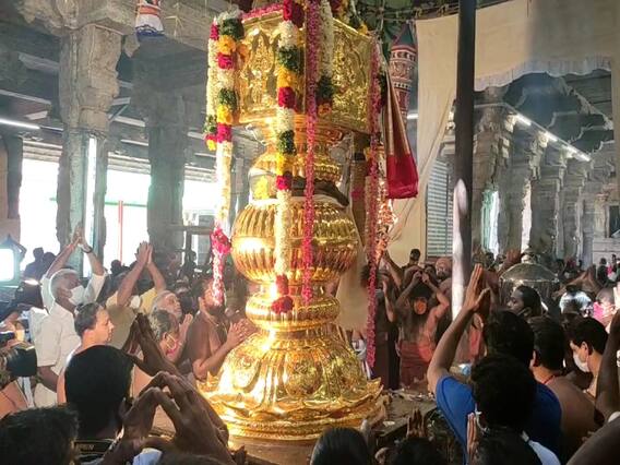 இந்த தங்ககட்டிகள் தகடுகளாக மாற்றும் வகையிலான பணிகள் தொடங்கி நடைபெற்று வந்த நிலையில் கொடிமரத்திற்கு தங்க ரேக்குகள், அடி பகுதி தாமரை வடிவிலான பத்ம பீடம் ஆகியவை தயார் செய்யப்பட்டு அவற்றை கொடிமரத்தில் பிரதிஷ்டை செய்யப்பட்டது. முழுவதுமாக தங்கத்தால் கொடிமரம் பொருத்தப்பட்டு இன்று கும்பாபிஷேக விழா நடைபெற்றது. முன்னதாக இரண்டு கால யாகசாலை பூஜைகள் நேற்று தொடங்கி நடைபெற்றது.