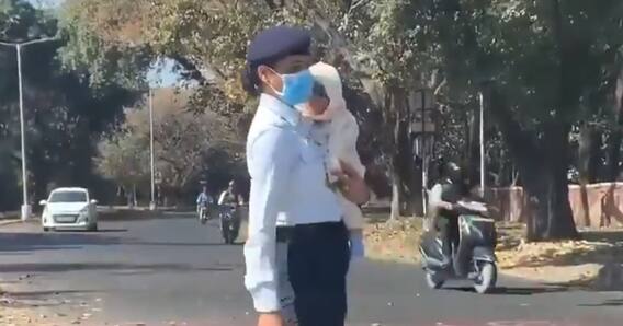 கைக்குழந்தையோடு ட்ராபிக்கை சரிசெய்த போலீஸ்.. வைரலான வீடியோ