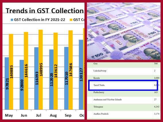 மாநிலங்களை பொறுத்தவரை 2022-23 ஆம் நிதி ஆண்டில், மகாராஷ்டிரா மாநிலத்தில் அதிகபட்சமாக ரூ. 22,695 கோடி வசூலாகியது. அதற்கு அடுத்ததாக கர்நாடக மாநிலத்தில் ரூ.10,360 கோடி வசூலாகியுள்ளது. மூன்றாவதாக குஜராத் மாநிலத்தில் ரூ.9,919 கோடி வசூலாகியுள்ளது. நான்காவதாக, தமிழ்நாட்டில் ரூ.9,245 கோடி வசூலாகியுள்ளது. கடந்த ஆண்டு மார்ச் மாதம், தமிழ்நாட்டில் ரூ 8,023 கோடி வசூலாகி இருந்தது குறிப்பிடத்தக்கது.