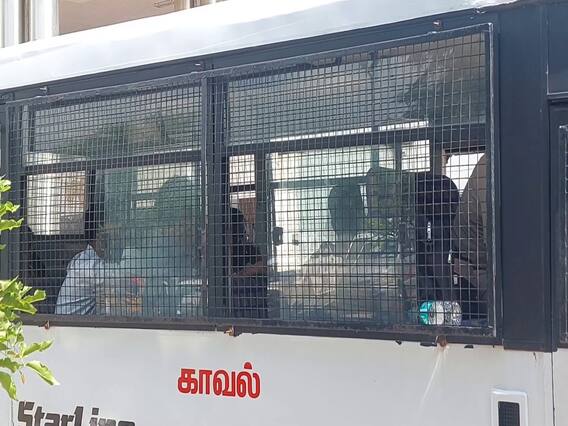 இதுதொடர்பான வழக்கு விசாரணை கடந்த பத்து ஆண்டுகளாக திருவாரூர் மாவட்ட குற்றவியல் நீதிமன்றத்தில் நடைபெற்று வந்தது. இந்த நிலையில் கடந்த மாதம் இந்த வழக்கில் தீர்ப்பு வழங்கப்பட்டது. இந்த தீர்ப்பில் எஸ்.பி அலுவலகத்தில் பணியாற்றிய ரவிச்சந்திரன், அசோக்குமார், மகாராஜன், லோகநாதன் ஆகிய நால்வருக்கும் மூன்று ஆண்டுகள் சிறை தண்டனையும், பிரபாகரன் மற்றும் திரைப்பட இயக்குனர் அசோகன் ஆகிய இருவருக்கும் இரண்டு ஆண்டுகள் சிறை தண்டனையும் விதிக்கப்பட்டது. இந்த வழக்கில் இந்திரஜித், ஈசன், பத்மநாபன் ஆகிய மூவரும் வெளிநாட்டுக்கு தப்பி சென்று விட்டனர். இந்திரஜித் திரைப்பட இயக்குனர் அசோகனின் அக்காள் மகன் என்பது குறிப்பிடத்தக்கது. இந்த நிலையில் இந்த வழக்கில் குற்றம் சாட்டப்பட்டவர்கள் மேல்முறையீடு செய்வதற்காக ஒரு மாதம் கால அவகாசம் அளிக்கப்பட்ட நிலையில் அவர்களது மனு உயர் நீதிமன்றத்தில் தள்ளுபடி செய்யப்பட்டதையடுத்து இன்று மீதமுள்ள ஆறு பேரையும் போலீசார் கைது செய்து திருவாரூர் அரசு மருத்துவக் கல்லூரி மருத்துவமனையில் கொரோனா பரிசோதனை உள்ளிட்ட மருத்துவ பரிசோதனைகள் செய்த பின்னர் திருச்சி மத்திய சிறைக்கு கொண்டு சென்றனர்.