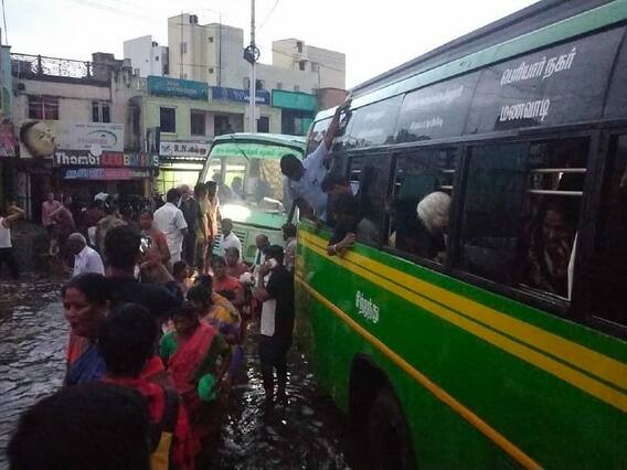 கரூரில் இரண்டு மணி நேரத்திற்கும் மேலாக பெய்த கனமழையின் காரணமாக சாலைகளில் குளம்போல மழை நீர் பெருக்கெடுத்து ஓடியது. குறிப்பாக பழைய பை-பாஸ் சாலையில் குளம்போல தேங்கிய மழைநீரில் திருப்பூரில் இருந்து கரூர் வழியாக திருச்சி செல்லும் பேருந்தில் சென்சாரில் மழைநீர் ஏரியதன் காரணமாக கோளாறு ஏற்பட்டது. அதனால் பயணிகள் இறக்கி விடப்பட்டனர். தொடர்ந்து பழைய பை-பாஸ் சாலையில் போக்குவரத்து பாதிப்பு ஏற்பட்டது. இதன் காரணமாக குறுக்கு சாலைகள் வழியாக வாகனங்களை போலீசார் திருப்பி விட்டனர்.