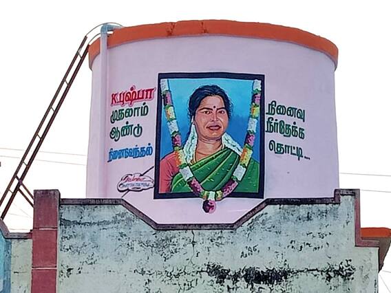 இந்தநிலையில், உயர்நிலை நீர்த்தேக்க தொட்டியில் தனது மனைவி புஷ்பாவின் முதலாம் ஆண்டு நினைவு அஞ்சலி செலுத்தும் விதமாக நீர்த்தேக்க தொட்டியில் புஷ்பாவின் படத்தை வரைந்து, நினைவு நீர்த்தேக்கத் தொட்டி என அதில் குறிப்பிட்டுள்ளார். அரசு சார்பில் அரசு இடத்தில் கட்டப்பட்ட உயர்நிலை நீர்த்தேக்க தொட்டியில் நினைவுச்சின்னமாக முன்னாள் ஊராட்சி மன்றத் தலைவர் தனது மனைவியின் புகைப்படத்தை வரைந்திருப்பது அப்பகுதியில் தற்போது பேசுபொருளாக மாறியுள்ளது.