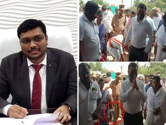 தனது காலணியை உதவியாளரை வைத்து எடுக்க சொன்ன ஆட்சியர் மீது நடவடிக்கை எடுக்க வேண்டும் என சமூக ஆர்வலர்கள் கோரிக்கை விடுத்துள்ளனர்.