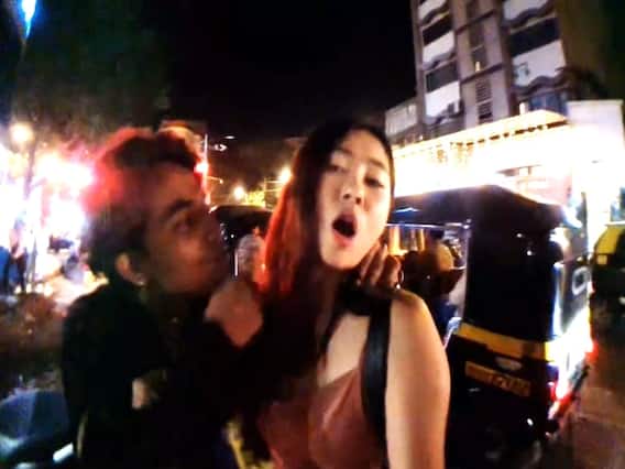 தென் கொரியாவைச் சேர்ந்த மியோச்சி என்ற யூடியூபர் கடந்த செவ்வாய்கிழமை இரவு மும்பையில் ஒரு பரபரப்பான தெருவில் தனது யூடியூபில் லைவ் செய்து கொண்டிருந்த போது இரு இளைஞர்கள் பைக்கில் லிப்ட் கொடுக்கிறேன் என்று அவரது கையைப் பிடித்து வலுக்கட்டாயமாக இழுத்துள்ளனர். யூட்யூபர் மியோச்சி அவர்களிடம் நோ நோ என்று கூறுவது விடியோவில் தெரிகிறது.
