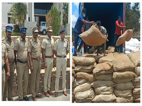இதனை அடுத்து அவற்றை பறிமுதல் செய்த காவல்துறையினர் தூத்துக்குடி மாவட்டத்தை சேர்ந்த லாரி ஓட்டுனர் தர்மலிங்கம் மற்றும் ஸ்ரீவைகுண்டம் பகுதியை சேர்ந்த மணிகண்டன் ஆகிய இருவரையும் காவல்துறையினர் கைது செய்தனர். இதேபோல் கர்நாடக மாநிலத்தில் இருந்து தமிழகத்திற்கு கடத்தி வரப்பட்ட 10 லட்சம் ரூபாய் மதிப்பிலான 3500 லிட்டர் கர்நாடக மதுபான பாக்கெட்டுகள், குட்கா கடத்தலுக்கு பயன்படுத்திய 12 லட்சம் மதிப்பிலான கண்டெய்னர் லாரியை காவல்துறையினர் பறிமுதல் செய்தனர். பறிமுதல் செய்யப்பட்ட குட்கா மற்றும் மதுபான பாக்கெட் ஆகியவற்றை மாவட்ட காவல் கண்காணிப்பாளர் சரோஜ் குமார் தாக்கூர் இன்று நேரில் பார்வையிட்டு ஆய்வு செய்தார். பின்னர் சிறப்பாக செயல்பட்டு அவர்களை பிடித்த காவலர்களை பாராட்டினார். அதனைத்தொடர்ந்து மாவட்ட காவல் கண்காணிப்பாளர் சரோஜ் குமார் தாக்கூர் பேசிய அவர் 60 லட்சம் மதிப்பிலான போதைப் பொருட்கள் மற்றும் 12 லட்சம் மதிப்பிலான லாரி ஆகியவை பறிமுதல் செய்யப்பட்டுள்ளது.