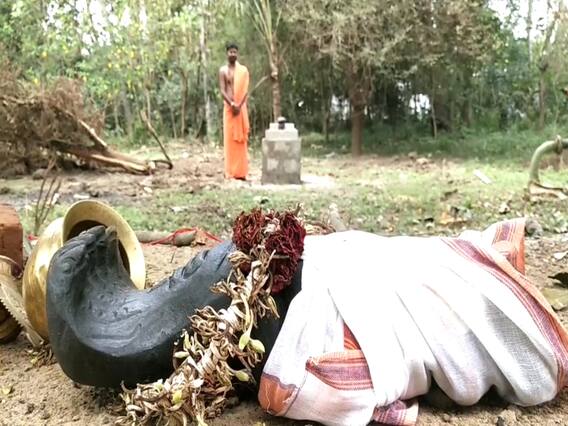 மயிலாடுதுறை மாவட்டம் மணல்மேடு பேரூராட்சிக்கு உட்பட்ட புத்தமங்கலம் அக்ரகார தெருவில் குணசேகரன் என்பவரின் 40 வயதான மகன் ராஜசிவம் என்பவர் வசித்து வருகிறார். இவருக்கு சொந்தமான இடத்தில் நாக தேவதை சாமி சிலையை பிரதிஷ்டை செய்து அதற்கு வழிபட்டு செய்து வருகிறார்.