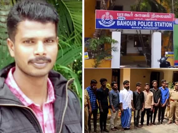 அப்போது அங்கு வந்த தாடி அய்யனார், எனக்கே மிரட்டல் விடுவாயா? உன்னை இப்போதே தீர்த்து கட்டுவதாக கூறியுள்ளார். பின்னர் தாடி அய்யனார், தனது கூட்டாளிகள் ஏழுமலை, சந்தோஷ், அர்ஜூன், ஆனந்து, விக்கி, வேல்முருகன், சுந்தர் ஆகியோருடன் சேர்ந்து தமிழரசனை கையால் அடித்தும், காலால் எட்டி உதைத்தும் தாக்கினர். இதில் மார்பு எலும்பு முறிந்து சம்பவ இடத்திலேயே தமிழரசன் துடிதுடித்து இறந்துபோனாதாக போலீசார் தெரிவித்தனர். கைது செய்யப்பட்டவர்களிடம் இருந்து 3 மோட்டார் சைக்கிள்கள், 3 செல்போன்கள் பறிமுதல் செய்யப்பட்டது. தாடி அய்யனார் மீது 4 கொலை வழக்குகள் மற்றும் அடிதடி, வெடிகுண்டு வீச்சி உள்ளிட்ட வழக்குகள் இருப்பது விசாரணையில் தெரியவந்தது. கைதான 9 பேரையும் நேற்று புதுச்சேரி நீதிமன்றத்தில் போலீசார் ஆஜர்படுத்தினர். பின்னர் அவர்கள் அனைவரும் காலாப்பட்டு மத்திய சிறையில் அடைக்கப்பட்டனர்.