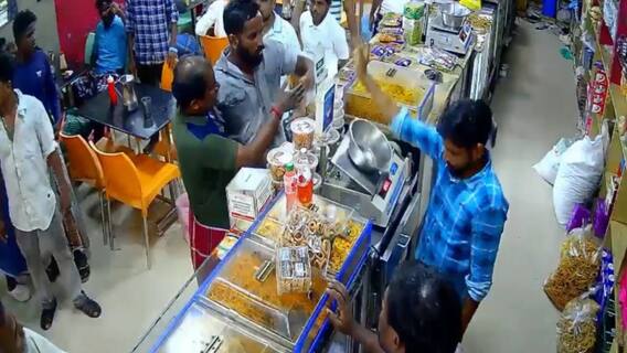 அதற்கு பேக்கரி ஊழியர்கள் கடன் கொடுப்பது இல்லை என கூறியதை அடுத்து, 'உங்க ஓனரிடம் சொல்லு நான் யார் தெரியுமா'..? எனக்கேட்டபடி பேக்கரி ஊழியரை ஓங்கி கன்னத்தில் அறைந்து விட்டு ஊழியரின் செல்போனையும் கீழே தட்டிவிட்டுக்கிறார். தடுக்க வந்த மற்றொரு ஊழியரை வெளியில் இழுத்துப்போட்டு சரமாரியாக தாக்கி கும்மாங்குத்து விட்டிருக்கிறார். கடன் கொடுக்க மறுத்ததால் பேக்கரியில் பணிபுரிந்த ஊழியர்களை தாக்கிய சிசிடிவி காட்சி தற்போது வெளியாகி பரபரப்பை ஏற்படுத்தியுள்ளது. மேலும், சிசிடிவி காட்சி ஆதாரங்களை வைத்து குற்றவாளிகள் மீது சாயல்குடி காவல் நிலையத்தில் வணிகர் சங்கத்தினர் புகார் கொடுத்துள்ளனர்.