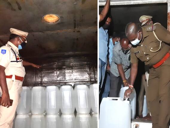 கன்டெய்னரில் மீன்கள் வைக்கும் பெட்டிகள் அடுக்கடுக்காக வைத்திருந்தன, இதனை ஒவ்வொன்றாக போலீசார் அகற்றினர் அப்பொழுது மீன் பெட்டிகளுக்கு நடுவே சுமார் 128 கேன்களில் 4450 லிட்டர் அதாவது ரூபாய் 50 லட்சம் மதிப்புள்ள எரிசாராயம் இருப்பதை கண்டுபிடித்தனர். இதை தொடர்ந்து போலீசார் மீன் ஏற்றி வந்த லாரியை மற்றும் ஏரி சாராயத்தையும் கைப்பற்றி காவல் நிலையத்திற்கு எடுத்துச்சென்று வழக்குப்பதிவு செய்து விசாரணை மேற்கொண்டு வருகின்றனர். மீன் ஏற்றிச்செல்லும் கன்டெய்னர் லாரியில் எரிசாராயம் எடுத்துச்செல்வது தெரியாமல் இருப்பதற்காக எரிசாராயத்தை உள்பக்கமாக அதனை மறைக்கும் விதத்தில் மீன் அட்டைப் பெட்டிகளில் நிரப்பி அதனை முழுவதுமாக மூடி எடுத்துச் சென்ற சம்பவம் அப்பகுதியில் பெரும் பரபரப்பை ஏற்படுத்தியுள்ளது.
