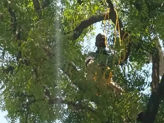 திருவண்ணாமலை மாவட்டம் போளூர் அடுத்த சேத்துப்பட்டு பேரூராட்சி அண்ணா தெருவை சேர்ந்தவர் மணிகண்டன் வயது (37), இவர் கார் ஓட்டுநராக பணியாற்றி வருகிறார். இவர் அண்ணா தெருவில் தாய், மற்றும் அவருடைய சகோதரியுடன் வசித்து வருகிறார். இவரது வீட்டின் பின்புறம் உள்ள இடத்தில் தனக்கு சேர வேண்டிய இடம் அளவு குறைவாக உள்ளதாக பிரச்சினை இருந்து வந்துள்ளதாக கூறப்படுகிறது. இந்நிலையில் தனக்கு சொந்தமான இடத்தை சரியாக அளந்து தரும்படி பலமுறை மணிகண்டன் அதிகாரிகளிடம் மனு அளித்துள்ளார். பலமுறை நிலம் அளவீடு செய்ததாக கூறப்பட்டது. ஆனால் அளவீடு செய்யப்பட்டது சரியாக வரவில்லை என்றும் நிலஅளவையர்கள் ஒருதலை பட்சமாக நடந்து கொள்கிறார்கள் என்றும், பலமுறை புகார் மனு அளித்தும் எந்தவித நடவடிக்கையும் எடுக்கவில்லை என்றும் கூறி மணிகண்டன், சேத்துப்பட்டு தாலுகா அலுவலக வளாகத்தில் உள்ள வேப்ப மரத்தின் உச்சியில் ஏறிகொண்டு மரக்கிளைகளில் கயிறு கட்டிக் கொண்டு தூக்கில் தொங்கி விடுவேன் என்று தற்கொலை மிரட்டல் விடுத்துள்ளார்.