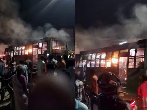 இதையறிந்ததும் அருகில் உள்ள ஆட்டோ டிரைவர்கள் மற்றும் அப்பகுதியை சேர்ந்த பொதுமக்கள் ஏராளமானோர் அங்கு திரண்டு வந்தனர். விபத்தில் அர்ஜூணன் இறந்த செய்தியை கேள்விப்பட்டதும் அவரது குடும்பத்தினர் மற்றும் உறவினர்களும் அலறியடித்துக்கொண்டு அங்கு ஓடி வந்தனர். அர்ஜூணன் ரத்த வெள்ளத்தில் பிணமாக கிடந்ததை பார்த்து அவர்கள் கதறி அழுதனர். மேலும் தனியார் பஸ் அதிவேகமாக வந்ததே விபத்துக்கு காரணம் என்றும், பஸ் டிரைவர் அங்கிருந்து தப்பி ஓடியதை அறிந்ததும் ஆத்திரமடைந்த அர்ஜூனனின் உறவினர்கள் மற்றும் பொதுமக்கள் சிலர் அந்த தனியார் பஸ்சின் மீது கல்வீசி தாக்கியும், உருட்டுக்கட்டையாலும் அடித்து நொறுக்கினர். இதில் பஸ்சின் முன்பக்க, பின்பக்க கண்ணாடிகளும் மற்றும் ஜன்னல் கண்ணாடிகளும் உடைந்து நொறுங்கி சேதமடைந்தது. அதோடு ஆத்திரம் தீராத அவர்கள், பஸ்சிற்குள் சென்று பின்பக்க இருக்கைகளில் பெட்ரோலை ஊற்றி பஸ்சுக்கு தீ வைத்து கொளுத்தினர். இதில் மளமளவென தீ கொழுந்து விட்டு எரியத்தொடங்கியது.