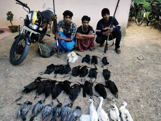 இதையடுத்து 3 வாலிபர்களையும் வனத்துறையினர் கைது செய்தனர். மேலும் துப்பாக்கியால் சுட்டு வேட்டையாடி விற்பனை செய்வதற்காக வைத்திருந்த அன்றில் பறவை-16, இந்திய வெள்ளை அரிவாள் மூக்கன்-1, மாடப்புறா-6, உண்ணி கொக்கு-4 ஆகியவற்றையும், 2 நாட்டு துப்பாக்கிகள், மோட்டார் சைக்கிள் பறிமுதல் செய்யப்பட்டது. கைதான 3 பேரும் வானூர் நீதிமன்றத்தில் ஆஜர்படுத்தப்பட்டு கடலூர் மத்திய சிறையில் அடைக்கப்பட்டனர். மேலும் வன பகுதியில் வேட்டையாடினால் மிகவும் கடுமையான தண்டனை வழங்கபடும் என வன காவலர்கள் எச்சரிக்கை விடுத்துள்ளனர்.