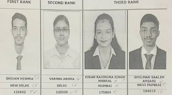 சிஏ இறுதித் தேர்வில் புதுதில்லியைச் சேர்ந்த சிவம் மிஸ்ரா 83.33 சதவீத மதிப்பெண்களுடன் முதல் இடம் பெற்றுள்ளார். இவர் 500 மதிப்பெண்கள் பெற்று சாதனை படைத்துள்ளார். டெல்லியைச் சேர்ந்த வர்ஷா அரோரா 80 சதவீத மதிப்பெண்களுடன் 480 மதிப்பெண்களைப் பெற்று இரண்டாம் இடத்தைப் பிடித்துள்ளார். மூன்றாவது இடத்தை, மும்பையைச் சேர்ந்த கிரண் ராஜேந்திர சிங் மன்ரல் மற்றும் கில்மான் சலீம் அன்சாரி ஆகியோர் பெற்றுள்ளனர். இவர்கள் மொத்தம் 477 மதிப்பெண்களுடன் 79.50 சதவீதம் மதிப்பெண் பெற்றுள்ளனர்.