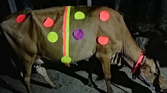 அல்லது பிரதிபலிப்பான் அட்டைகளை (Reflector stickers) ஒட்டலாம் . வாகனங்களின் ஒளி மாடுகள் மீது மாட்டப்பட்டுள்ள பெல்ட்டுகள் மீது அல்லது ஒட்டப்பட்டுள்ள ஸ்டிக்கர்கள் மீது பட்டு பிரதிபலிக்கும். எனவே வாகன ஓட்டிகள் எச்சரிக்கையாக வாகனங்களை ஓட்ட முடியும். விபத்தையும் தடுக்க முடியும்' என்றனர்.