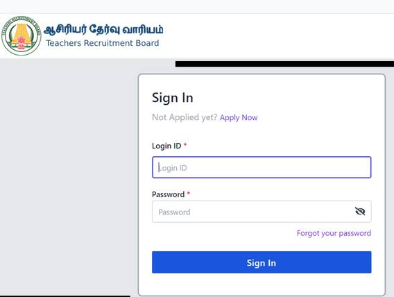அதையடுத்து https://trb1.ucanapply.com/login என்ற இணைப்பை க்ளிக் செய்து, லாகின் ஐடி மற்றும் பாஸ்வேர்டு ஆகியவற்றை உள்ளிட வேண்டும்.