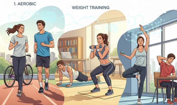 ஏரோபிக் பயிற்சிகள், கார்டியோ என்றும் அழைக்கப்படுகின்றன, இவை மூளைக்கு இரத்த ஓட்டத்தை அதிகரித்து, நினைவாற்றலை மேம்படுத்த உதவுகின்றன. மாணவர்கள் தினமும் 20- 30 நிமிடங்கள் ஜாகிங், brisk வாக்கிங், சைக்கிள் ஓட்டுதல் அல்லது ஸ்கிப்பிங் செய்யலாம்.