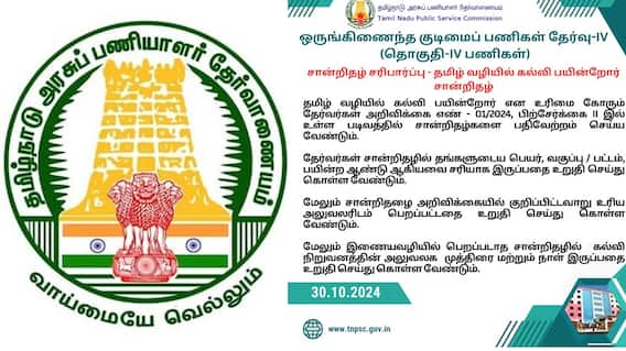இந்த நிலையில், குரூப் 4 தேர்வுக்கான சான்றிதழ்களை ஆன்லைனில் சரிபார்க்க, ஆவணங்களைப் பதிவேற்றம் செய்ய 10 வேலை நாட்கள் மட்டுமே வழங்கப்படும் என்று டிஎன்பிஎஸ்சி அறிவிப்பு வெளியிட்டது.
