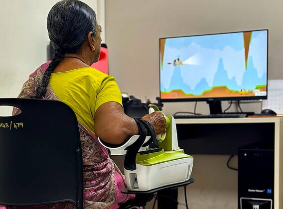 த்ரைவ் ரிஹாப் சொல்யூசன்ஸ்’ நிறுவனத்தால் வணிகப்படுத்தப்பட்ட, இந்த காப்புரிமை பெறப்பட்ட தொழில்நுட்பம் துல்லியமான சிகிச்சை இயக்கம், நிகழ்நேர தரவுகள் ஆகியவற்றை வழங்குவதுடன் பக்கவாதத்தால் பாதிக்கப்பட்ட, முதுகுத்தண்டில் காயமடைந்த நோயாளிகளுக்கு பயனுள்ளதாக இருப்பதையும் உறுதி செய்கின்றன. ஐஐடி சென்னை, வேலூர் கிறிஸ்தவ மருத்துவக் கல்லூரி (சிஎம்சி வேலூர்) ஆராய்ச்சியாளர்கள் இணைந்து கை மறுவாழ்வுக்காக குறைந்த விலையில், கையில் எடுத்துச் செல்லக்கூடிய பிளக்- அண்ட்-ட்ரெய்ன் ரோபோவை உருவாக்கியுள்ளனர்.
