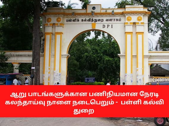 தமிழ், ஆங்கிலம், வணிகவியல், பொருளியல், கணிதம், இயற்பியல் ஆகிய 6 பாடங்களுக்கான பணிநியமான நேரடி கலந்தாய்வு நாளை நடைபெறும் என பள்ளி கல்வி துறை அறிவித்துள்ளது