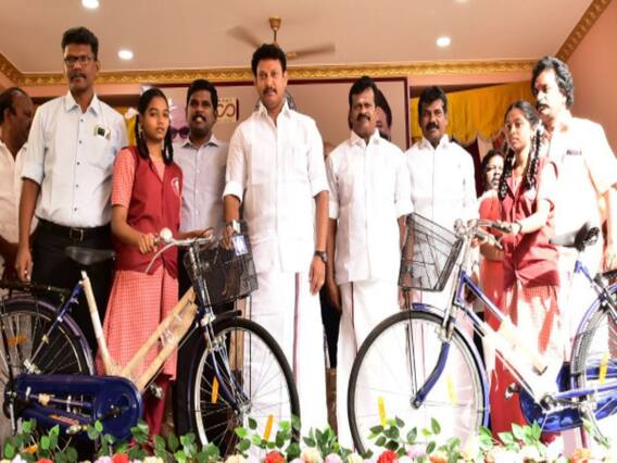 திருச்சி பொன்மலைப்பட்டி புனித வளனார் பெண்கள் மேல்நிலைப்பள்ளி வளாகத்தில் தமிழக பள்ளிக் கல்வித்துறை அமைச்சர் அன்பில் மகேஷ் பொய்யாமொழி மாணவிகளுக்கு விலையில்லா இலவச மிதிவண்டிகளை வழங்கினார். குறிப்பாக திருச்சி பொன்மலைப்பட்டி புனித வளனார் பெண்கள் மேல்நிலைப்பள்ளி வளாகத்தில் தமிழக பள்ளிக் கல்வித்துறை அமைச்சர் அன்பில் மகேஷ் பொய்யாமொழி மாணவிகளுக்கு விலையில்லா இலவச மிதிவண்டிகளை வழங்கினார். இதனை தொடர்ந்து மேடையில் பேசிய அமைச்சர் அன்பில் மகேஷ் பேசுகையில், “தமிழக முதலமைச்சர் மாணவ செல்வங்களிடம் தொடர்ந்து முன்வைக்கக்கூடிய வேண்டுகோள். நன்கு உணவருந்த வேண்டும். நன்கு விளையாட வேண்டும். உடலை ஆரோக்கியமாக வைத்துக் கொள்ள வேண்டும். மாணவர்கள் தாங்கள் கற்பித்து நல்ல மதிப்பெண்கள் பெரும் அதே நேரத்தில் தாங்கள் கற்றுக் கொண்டதை சக மாணவர்களுக்கு சொல்லித் தந்து உதவ வேண்டும். இந்த சமூகத்தில் நடமாடும் நல்ல மனிதர்களை உருவாக்கக்கூடிய இடம்தான் பள்ளிக்கூடம், இங்கு படித்து விட்டு செல்பவர்கள் மருத்துவர்களாக, பொறியாளராக, ஏன் கல்வித்துறை அமைச்சராக கூட ஆகலாம். பெற்றோர்கள், ஆசிரியர்கள் என்னென்ன வழிகாட்டுதல்களை சொல்லித் தருகிறார்களோ அதனை மாணவச் செல்வங்கள் பின்பற்ற வேண்டும்” என மாணவர்கள் மத்தியில் உரையாற்றினார்.