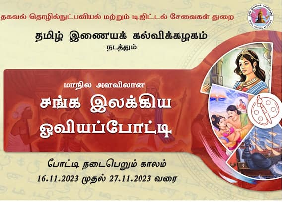 சங்க இலக்கிய பாடல்களை ஓவியங்களாக வரையும் போட்டியில் பள்ளி, கல்லூரி மாணவர்கள் மற்றும் ஓவியர்கள் பங்கேற்கலாம் என தமிழ் இணைய கல்விக்கழகம் அழைப்பு விடுத்துள்ளது. இதில் பங்கேற்பது எப்படி என்று பார்க்கலாம்.