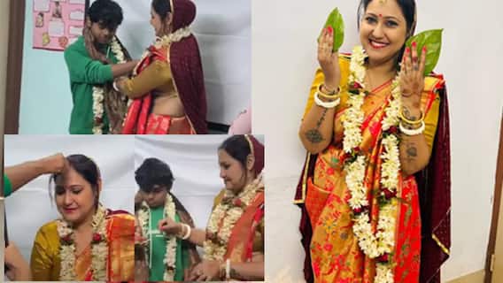 இதுதொடர்பான புகைப்படங்கள், வீடியோக்களில், மாணவன் ஆசிரியரின் நெற்றியில் குங்குமம் வைக்கிறார். திருமண சடங்குகளான மாலை மாற்றுதல், ஹல்தி ஆகியவை மேற்கொள்ளப்படுகின்றன.