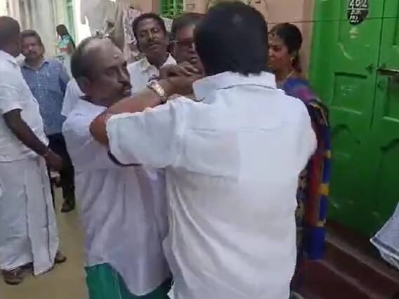 இந்நிலையில், பெரியண்ணா வீதியில் உள்ள கலைமகள் பள்ளி வாக்குச் சாவடியில் இருந்து சற்று தொலைவில் உள்ள ஒரு வீட்டில், வாக்காளர்களை திமுகவினர் அடைத்து வைத்து அவர்களுக்கு பரிசுப் பொருட்கள் வழங்கி வருவதாக அதிமுகவினர் குற்றம் சாட்டியுள்ளனர். மேலும், காவல் துறையினருடன் அந்த வீட்டிற்கு வந்த அதிமுகவினர் அங்கிருந்த திமுகவினருடன் வாக்கு வாதத்தில் ஈடுபட்டனர். இது தள்ளு - முள்ளுவாக மாறிய நிலையில், காவல் துறையினர் திமுக மற்றும் அதிமுகவினரை விலக்கினர். மேலும், இங்கு ஏன் அனைவரும் கூடியுள்ளீர்கள் என்ற கேள்விக்கு ”நாங்கள் அனைவரும் உறவினர்கள், சந்திக்க வந்துள்ளோம்” என கூறியுள்ளனர்.