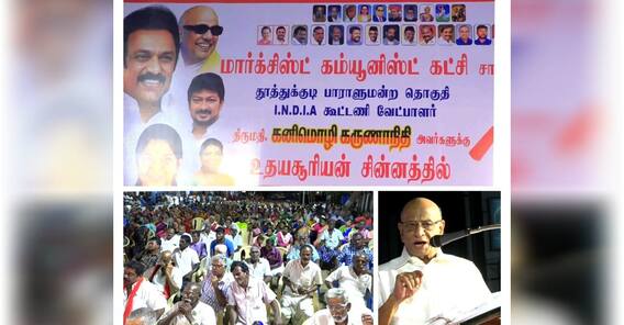 தூத்துக்குடி மக்களவைத் தொகுதியில் இண்டியா கூட்டணி சார்பில் போட்டியிடும் திமுக வேட்பாளர் கனிமொழியை ஆதரித்து கோவில்பட்டியில் மார்க்சிஸ்ட் கம்யூனிஸ்ட் கட்சி சார்பில் பிரச்சார பொதுக்கூட்டம் நடந்தது.
