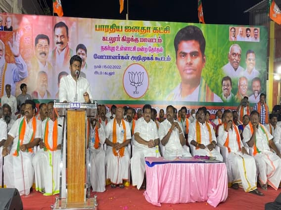 கடலூர் மாவட்டத்தில் நகர்புற உள்ளாட்சி தேர்தலில் போட்டியிடும் பா.ஜ.க. வேட்பாளர்கள் அறிமுக கூட்டம் நேற்று இரவு திருப்பாதிரிப்புலியூர் தேரடி தெருவில் நடைபெற்றது. கூட்டத்திற்கு பா.ஜ.க. மாநில தலைவர் அண்ணாமலை தலைமை தாங்கி, வேட்பாளர்களை அறிமுகம் செய்து வைத்தார். பின்னர் அவர் பேசியதாவது,கடந்த காலங்களில் முதல்-அமைச்சர்கள் உள்ளாட்சி தேர்தல் பரப்புரையின் போது வெளியே வந்து பேசுவார்கள். ஆனால் இந்த முறை முதல்-அமைச்சர் களத்திற்கே வராமல், காணொலி மூலம் ஓட்டு கேட்டுக் கொண்டிருக்கிறார், மேலும் கடந்த 8 மாத கால ஆட்சியில் திமுக மக்களின் கோபத்தையும், சாபத்தையும் சம்பாதித்துள்ளது.