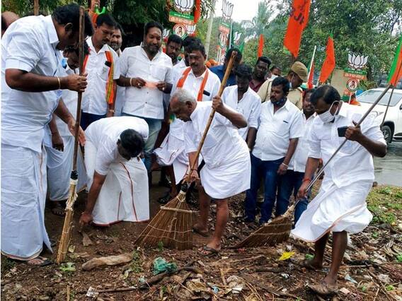 தஞ்சாவூர் மாநகராட்சியில் போட்டியிடும் பாஜக வேட்பாளர்களை ஆதாரித்து பேசுவதற்காக தஞ்சை வந்த முன்னாள் மத்திய இணையமைச்சர் பொன்.ராதாகிருஷ்ணன் பாஜக அலுவலகத்தை திறந்து வைத்ததுடன் புதிய வீட்டு வசதி வாரிய குடியிருப்பு பகுதியில் வேட்டியை மடித்து கட்டிக்கொண்டு, துடைப்பத்தால், அப்பகுதியில் துாய்மை பணியில் ஈடுபட்டார். முன்னாள் மத்திய இணையமைச்சர் பொன்.ராதாகிருஷ்ணன் பேசுகையில், தமிழகத்தில் அனைத்து பகுதிகளில் மக்கள் கூடி நின்று பாஜகவிற்கு ஆதரவு தெரிவிக்கின்றனர். மக்கள் அனைவரும் பாஜகவினர் வெற்றி பெற வைக்க வேண்டும் என்ற எண்ணத்தில் உள்ளனர். மாநில தலைவர் அண்ணாமலை ஒரு மாற்றத்தை கொண்டு வரவேண்டும் என, உள்ளாட்சி தேர்தலில் யாருடனும் கூட்டணி வைக்காமல் பாஜக மாபெரும் சக்தியாக உருவாக்க வேண்டும் என்றுள்ளார்.