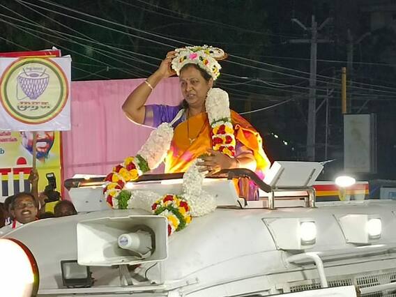 கரூர் மாநகராட்சி, புலியூர் உப்பிடமங்கலம் புஞ்சை தோட்டக்குறிச்சி, அரவக்குறிச்சி உள்ளிட்ட பேரூராட்சிகளில் தேமுதிக சார்பில் போட்டியிடும் வேட்பாளர்களை ஆதரித்து தேமுதிக கட்சியின் பொருளாளர் பிரேமலதா விஜயகாந்த், கரூர் வட்டாட்சியர் அலுவலகம் முன்பு பரப்புரையில் ஈடுபட்டு பேசினார். தேமுதிகவை பொருத்தவரை பொய் வாக்குறுதிகளை கொடுப்பதில்லை ரேஷன் கார்டுக்கு ஆயிரம் ரூபாய் கொடுப்போம், நகைக்கடன்களை தள்ளுபடி செய்வோம் என பொய்யான வாக்குறுதிகளை கொடுத்து வெற்றி பெற்றவர்கள் மத்தியில் என்ன செய்வோமோ அதை வாக்குறுதிகளாக கொடுத்து வருகிறோம்.