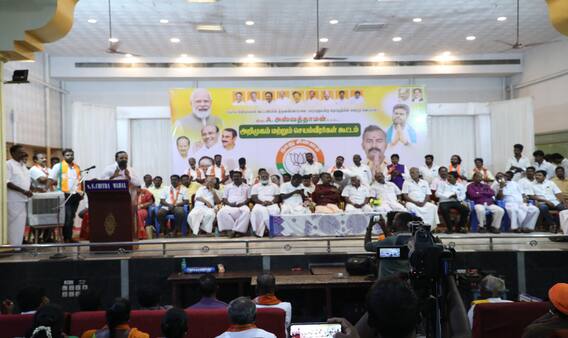 தமிழ்நாட்டில் மக்களவைத் தேர்தல் வருகின்ற 19-ஆம் தேதி நடைபெற உள்ளது. இன்று முதல் அனைத்து அரசியல் கட்சிகளும் தீவிர பிரச்சாரத்தில் ஈடுபட துவங்கியுள்ளனர். இந்த நிலையில் திருவண்ணாமலை நாடாளுமன்ற தொகுதியில் திமுக, அதிமுக, பாஜக, நாம் தமிழர் ஆகிய காட்சிகள் தங்களுடைய வேட்பாளர்களை அறிவித்துள்ளது. இதில் திருவண்ணாமலை நாடாளுமன்ற தொகுதிக்கு பாஜக சார்பில் அஸ்வத்தாமன் போட்டியிடுகிறார். பாஜக கூட்டணியில் பாமக, அமமுக உள்ளிட்ட கட்சிகள் உள்ளன. கடந்தவாரம் காஞ்சி தனியார் திருமண மண்டபத்தில் வேட்பாளர் அறிமுக கூட்டம் நடைபெற்றது. தற்போது திருவண்ணாமலை நகராட்சியில் நிர்வாகிகள் சந்திப்பு கூட்டம் நடைபெற்றது. இந்த கூட்டத்தில் பாஜக , பாமக , அமமுக கட்சி நிர்வாகிகள் கலந்து கொண்டனர். இந்த கூட்டத்தில் நாம் நாடாளுமன்ற தேர்தலில் எப்படி வெற்றிகொள்வது குறித்து என பலர் கருத்துகளை தெரிவித்தனர்.