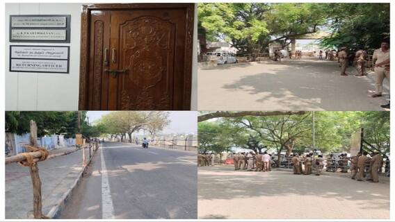 * வேட்பு மனு தாக்கல் நடைபெறும் மாவட்ட ஆட்சியர் அலுவலகம் உள்ளிட்ட பகுதிகளில் பலத்த பாதுகாப்பு ஏற்பாடுகள்