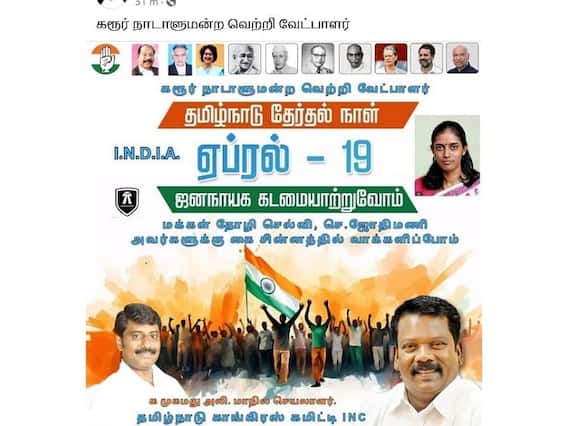 கரூர் நாடாளுமன்ற தொகுதி காங்கிரஸ் கட்சிக்கு என்று ஒதுக்கப்பட்டுள்ள நிலையில் தற்போதைய எம்.பி ஜோதிமணி மற்றும் முன்னாள் மாவட்ட தலைவர் பேங்க் சுப்ரமணியன் ஆகியோரின் ஆதரவாளர்கள் சமூக வலைதளங்களில் ஆதரவு கேட்டு வருகின்றனர்.