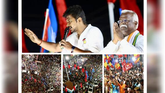 சென்னையில் பல்நோக்கு மருத்துவமனையை ஒரு வருடத்தில் கட்டி தருவேன் எனக் கூறிய முக ஸ்டாலின் பத்து மாதங்களில் கட்டி அதை திறந்து வைத்துள்ளார். தமிழ்நாட்டில் இருந்து ஒரு ரூபாய் ஜிஎஸ்டி கொடுத்தால் மத்திய அரசு அதில் 29 பைசா தான் திருப்பி தருவதாக பதாகையை காண்பித்து பேசினார். எந்த உருட்டல் மிரட்டலுக்கும் பயப்படாத கலைஞர் வழியில் வந்தவர்கள் நாங்கள். குடியுரிமைச் சட்டம் மற்றும் நீட் தேர்வு பற்றி குறிப்பிட்டு பேசினார். கலைஞர் இருக்கும் வரை தமிழ்நாட்டில் நீட் தேர்வு நுழையவில்லை என்றார். அதே போல அனிதா மற்றும் சென்னை ஜெகதீசன் மரணத்தை குறிப்பிட்டு ஒரு குடும்பத்தையே நீட் தேர்வால் இழந்திருக்கிறோம் என கூறினார். நீங்கள் அனைவரும் கை சின்னத்திற்கு தான் வாக்களிப்பீர்கள் எனக்கு நம்பிக்கை இருக்கிறது. ஜூன் மூன்றாம் தேதி கலைஞர் உடைய நூற்றி ஒன்றாவது பிறந்தநாள். அந்த நாளில் 40 க்கு 40 தொகுதியிலும் வெற்றி பெற்று அந்த வெற்றியை கலைஞரின் பாதமலர்களில் சமர்ப்பிக்க வேண்டும் என உங்கள் வீட்டுப் பிள்ளையாக கேட்கிறேன் என உரையை நிறைவு செய்தார்.