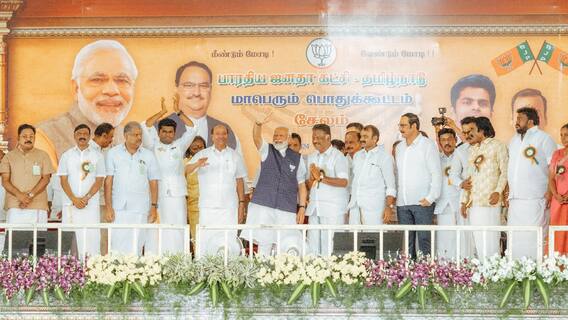 சேலம் கெஜ்ஜல்நாயக்கன்பட்டியில் பாரதிய ஜனதா கட்சி சார்பில் பிரதமர் மோடி பங்கேற்ற பிரச்சார பொதுக்கூட்டத்தில் பாஜக கூட்டணி கட்சி தலைவர்கள் உரையாற்றினர்.