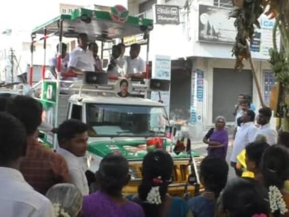 கரூர் நாடாளுமன்ற தொகுதி அதிமுக வேட்பாளர் தங்கவேலுவை ஆதரித்து முன்னாள் போக்குவரத்து துறை அமைச்சரும் கரூர் மாவட்ட செயலாளருமான எம்.ஆர்.விஜயபாஸ்கர் வேம்பு மாரியம்மன் கோவில் தெருவேம்பு மாரியம்மன் கோவில் தெரு, முருகநாதபுரம், நீலிமேடு, ஐந்து ரோடு ஆகிய பகுதிகளில் இறுதிக்கட்ட தீவிர பிரச்சாரத்தில் ஈடுபட்டார். முன்னதாக வேம்பு மாரியம்மன் கோவிலில் சாமி தரிசனம் செய்துவிட்டு பின்னர் பொதுமக்கள் ஆரத்தி எடுத்து உற்சாக வரவேற்பளித்தனர்.