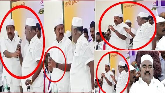 இதில் முதலாவதாக அமைச்சர் செஞ்சி மஸ்தான் இப்தார் நோன்பு நிகழ்ச்சி குறித்து பேசினார். அப்பொழுது நோன்பு திறந்த பின்னர் அனைவரும் பானை சின்னத்திற்கு வாக்களிக்க வேண்டும் என உறுதிமொழி ஏற்க வேண்டும் என அமைச்சர் செஞ்சி மஸ்தான் கூறினார். அப்பொழுது அருகில் இருந்த அமைச்சர் பொன்முடி திடீரென எழுந்து அமைச்சர் செஞ்சி மஸ்தான் கையில் இருந்து மைக்கை பிடுங்கினார். அப்போது செஞ்சி மஸ்தான், அமைச்சர் பொன்முடியிடம் பேசுகையில் இருவருக்கும் இடையில் வாக்குவாதம் ஏற்பட்டது. இதனால் மேடையில் அமர்ந்திருந்த செஞ்சி மஸ்தான் முகம் வாடியது. இதனால் அந்த இடம் சிறிது நேரம் பரபரப்பாக காணப்பட்டது.