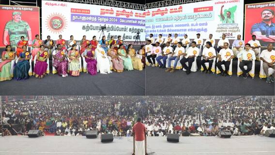 2024 மக்களை தேர்தலில் போட்டியிடும் நாம் தமிழர் கட்சியின் 20 பெண்கள் மற்றும் 20 ஆண்கள் அடங்கிய 40 வேட்பாளர்களை ஒரே மேடையில் அறிமுகப்படுத்தினார் நாம் தமிழர் கட்சியின் ஒருங்கிணைப்பாளர் சீமான்.