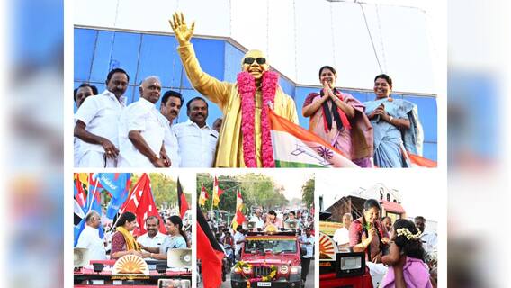 அப்போது அங்கு திரண்டிருந்த மக்கள் மத்தியில் திறந்த ஜீப்பில் நின்றவாறு கனிமொழி பேசும்போது, தூத்துக்குடி எனக்கு இரண்டாவது தாய் வீடாகும். மீண்டும் ஒருமுறை உங்களுக்கு பணியாற்ற எனக்கு வாய்ப்பு கிடைத்திருப்பதை நினைத்து மகிழ்ச்சியடைகிறேன். தூத்துக்குடி தொகுதியில் என்னை வெற்றி பெறச் செய்வதோடு, தமிழகம், புதுச்சேரியில் உள்ள 40 தொகுதிகளிலும் நாம் வெற்றி பெற வேண்டும். தமிழகத்தை தொடர்ந்து வஞ்சித்து வரும் மத்திய பாஜக அரசை வீட்டுக்கு அனுப்ப வேண்டும். மழை வெள்ளத்தால் மக்கள் துயருற்ற நேரத்தில் வராத பிரதமர் மோடி தற்போது அடிக்கடி வருகிறார். இங்கே வரும்போதெல்லாம் திமுக இல்லாமல் போய்விடும் என கூறுகிறார். இவ்வாறு சொன்ன பல பேர் இருக்கும் இடம் தெரியாமல் போயிருக்கிறார்கள் என்பது தான் வரலாறு. ஆனால், திமுக இன்று திராவிட மாடல் ஆட்சியாக மாறியிருக்கிறது.