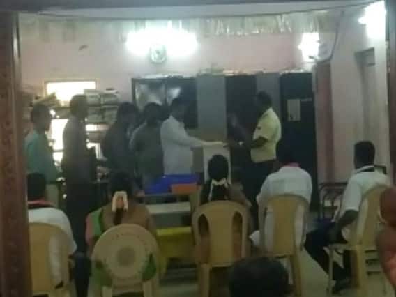 அதிமுக, திமுக வேட்பாளர்கள் தலா 9 வாக்குகள் வாங்கிய நிலையில் குலுக்கல் முறையில் பேரூராட்சி தலைவர் பதவி தேர்வு செய்யப்பட்டுள்ளது.