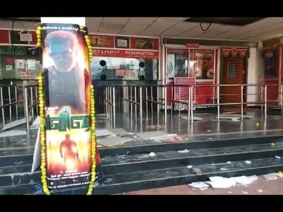 இந்த நிலையில் அதிகாலை முதல் காட்சி திரைப்படம் ஒளிபரப்பு செய்ய காலதாமதம் ஏற்பட்டதால் கோபமடைந்த அஜித் ரசிகர்கள் திரையரங்கில் இருந்த கண்ணாடிகள் மற்றும் இரும்பு ஷட்டரை உடைத்து எறிந்துவிட்டு திரை அரங்கிற்குள் சென்றதால் பெரும் பரபரப்பு ஏற்பட்டது. இச்சம்பவம் குறித்து தகவலறிந்த பள்ளப்பட்டி காவல் நிலைய போலீசார் சம்பவ இடத்திற்கு விரைந்து சென்று ரகளையில் ஈடுபட்ட ரசிகர்களை சமாதானம் செய்தனர். பின்னர் அரை மணி நேரம் தாமதமாக வலிமை படம் திரையிடப்பட்டது.