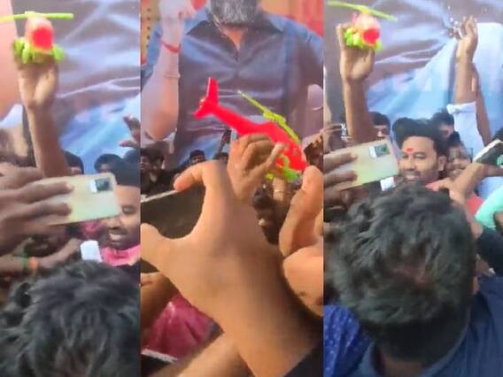 முன்னதாக ஒவ்வொரு படத்துக்கும் வித்தியாசமான கெட்டப்பில் வரும் கூல் சுரேஷ் இந்த படத்துக்கு ஹெலிகாப்டரில் வரப்போவதாக தெரிவித்ததாக தகவல் வெளியாகியிருந்தது. இதனால் ரசிகர்கள் பெரும் ஆவலுடன் காத்திருந்த நிலையில், பொம்மை ஹெலிகாப்டருடன் அவர் வந்தது சிரிப்பலையை ஏற்படுத்தியது. இதன் வீடியோவும் இணையத்தில் வைரலாகியுள்ளது.