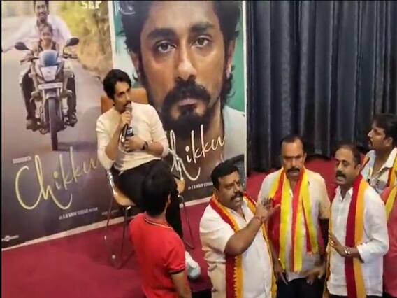 இந்த நிலையில், இன்று பெங்களூரில் சித்தா படத்தின் ப்ரமோஷன் விழா நடைபெற்றுக் கொண்டிருந்தபோது கன்னட அமைப்பினர் உள்ளே புகுந்தனர். அவர்கள் மேடையில் அமர்ந்திருந்த சித்தார்த்தை நோக்கி கன்னடத்தில் ஏதோ கூறினர். மேலும், சித்தார்த்தை வெளியே செல்லுமாறும் அறிவுறுத்தினர். இதனால், பெரும் பரபரப்பு ஏற்பட்டது. சித்தார்த்திற்கு மிக அருகில் நின்று கொண்டு அவர்கள் சித்தார்த்தை மிரட்டும் தொனியில் பேசியதால் சித்தார்த் விழா மேடையில் இருந்து சிரித்துக்கொண்டே பாதியிலே இறங்கிச் சென்றார்.
