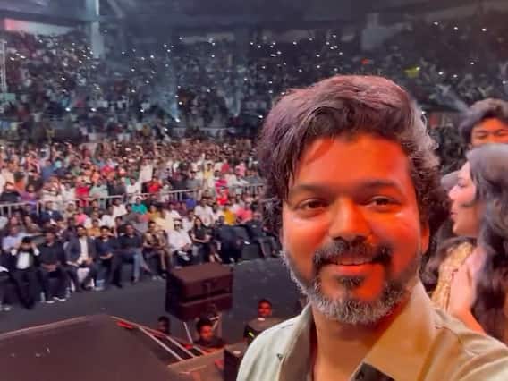 இந்நிலையில், விழாவின் முக்கியக் கட்டமாக இறுதியாக மேடையேறிய விஜய், அரங்கம் முழுவதும் குவிந்திருந்த ரசிகர்களுடன் செல்ஃபி வீடியோ எடுத்தார்.