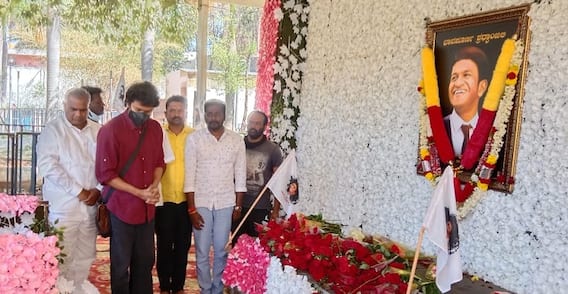 கடந்த ஆண்டு மறைந்த நடிகர் புனீத் ராஜ்குமாரின் நினைவிடத்திற்கு பலரும் அஞ்சலி செலுத்தி வருகின்றனர். இந்த நிலையில், இன்று நடிகர் விஜய் புனீத் ராஜ்குமாரின் நினைவிடத்திற்கு வந்து அவரது புகைப்படத்திற்கு அஞ்சலி செலுத்தினார்.