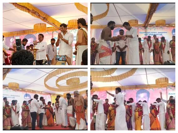 இந்நிலையில், தற்போது சென்னையில் உள்ள மாதவரத்தில் 11 ஏழை ஜோடிகளுக்கு இலவச திருமணம் செய்து வைத்தார். அப்போது இந்து, இஸ்லாம், கிறிஸ்தவம் ஆகிய மூன்று மதங்களின் வழிமுறைப்படி இறைவனை வணங்கி, திருமணத்தை நடத்தி வைத்தார்.